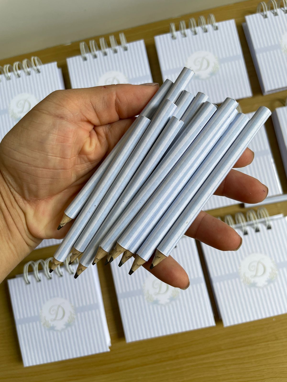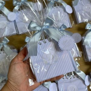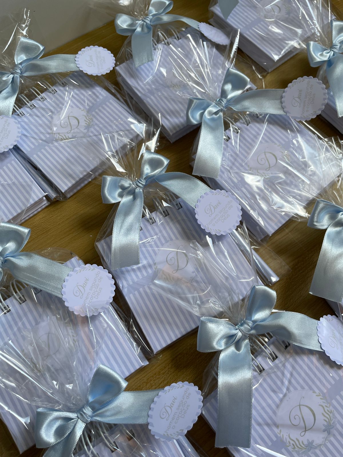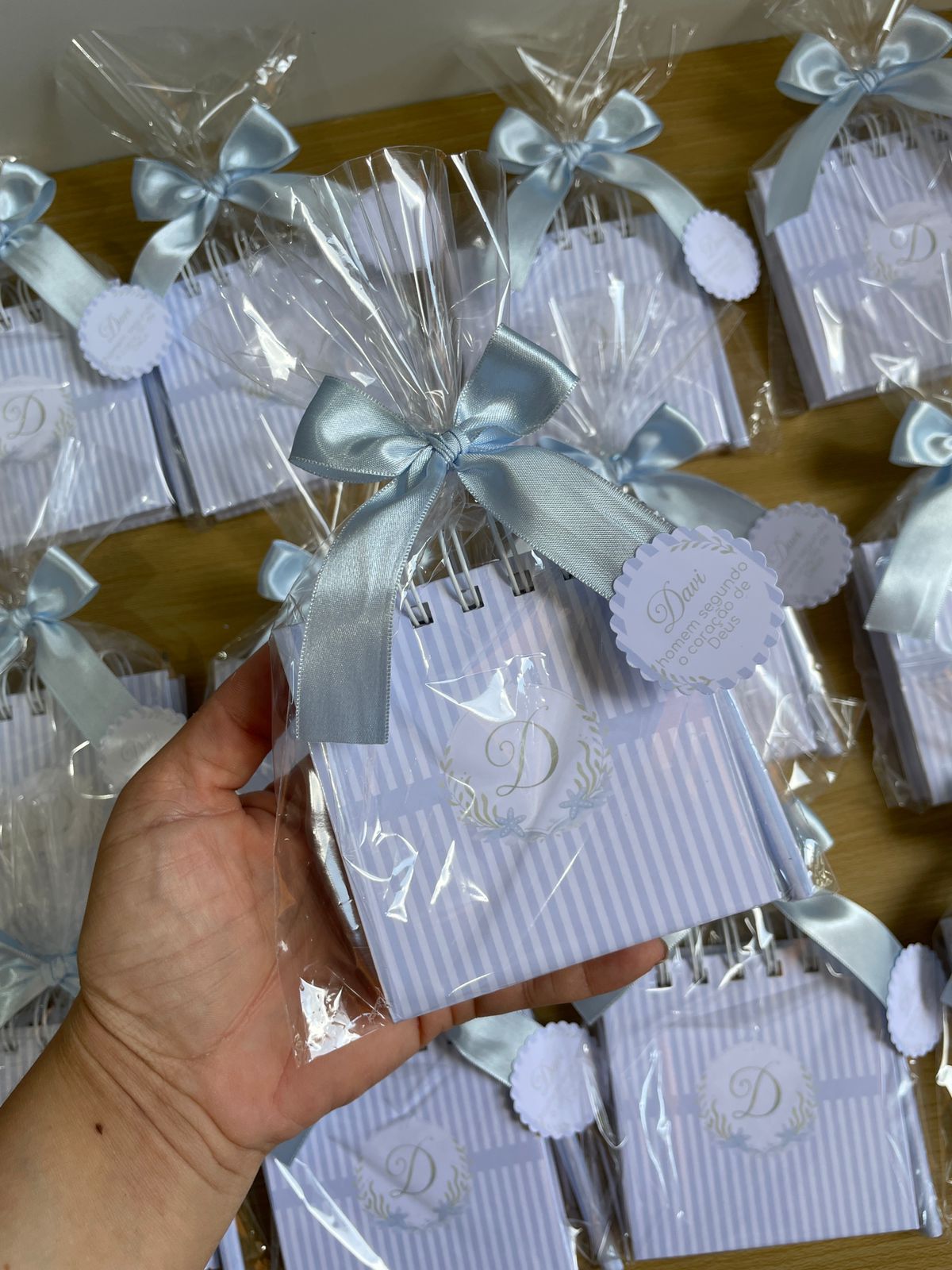 Bloquinho quadrado capa dura encadernação wire-o + embalagem+ laço cetim + tag + mini lápis