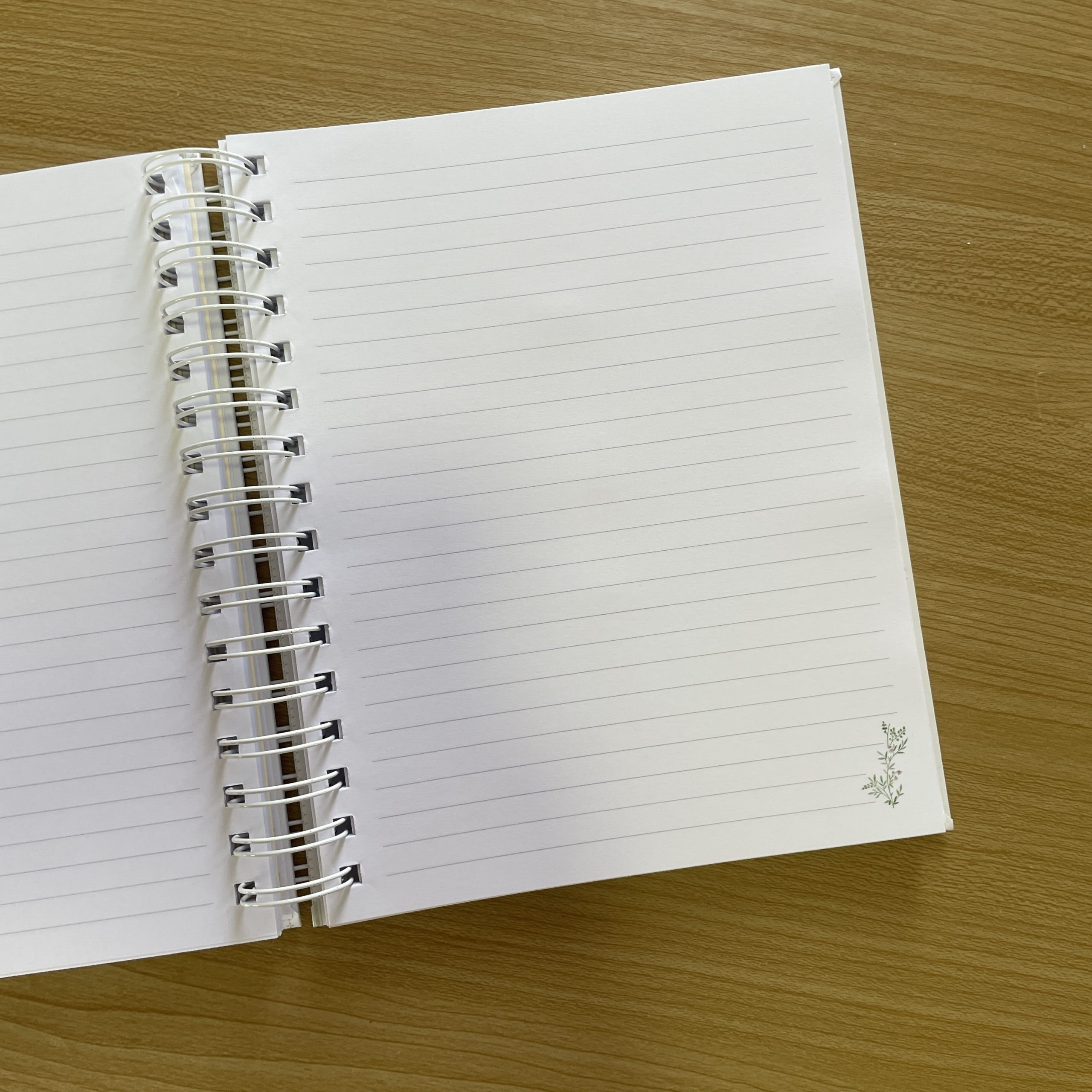 - Páginas: 120 folhas / 240 páginas pautadas com ilustração de galhos no rodapé + calendário 2025/2026 + página inicial