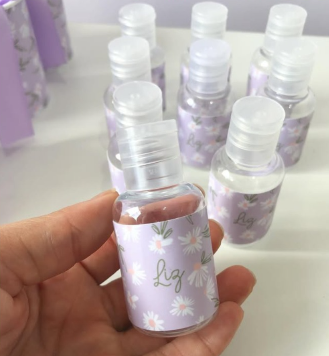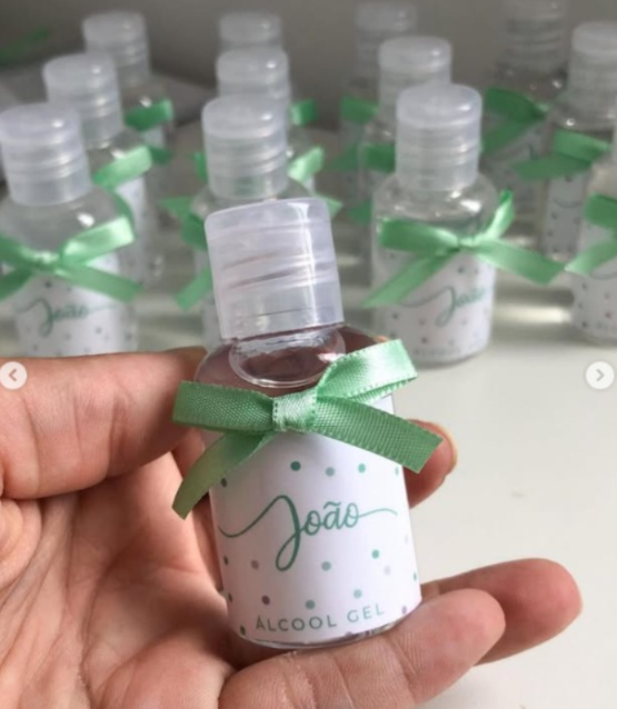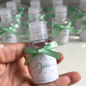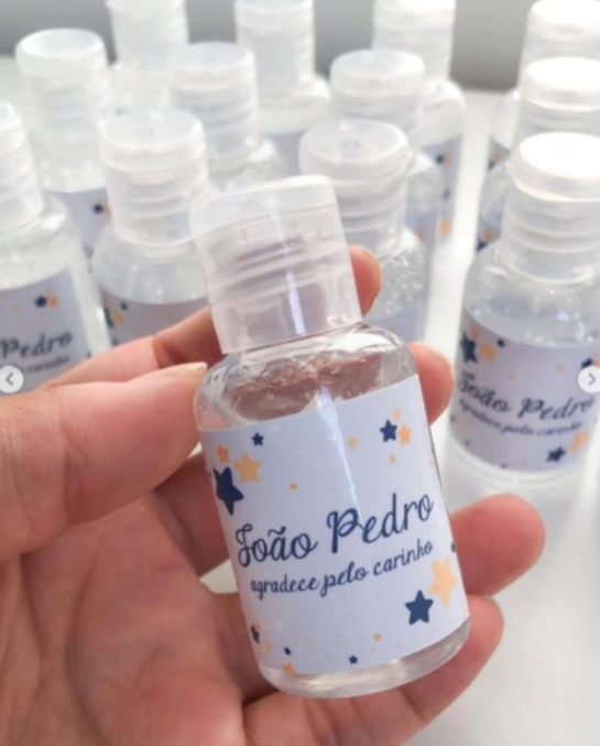 O frasquinho com álcool gel é uma das opções mais usados como lembrancinhas de maternidade, além do álcool gel você pode colocar hidratante, sabonete líquido, cheirinho…
